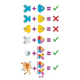 Il y a 48 cartes de poissons de couleur, 4 cartes de poissons gris, 1 carte poulpe et 2 cartes de règles.