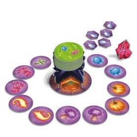 Simsala Spin est un jeu coopératif de mémoire avec une touche magique : les emplacements des ingrédients changent en cours de partie ! Il faudra donc bien s’organiser pour retrouver tous les éléments d’une recette. À chaque potion complétée, vous débloquez de puissants bonus. Et si toutes les potions sont brassées à temps, tout le monde gagne ensemble !
